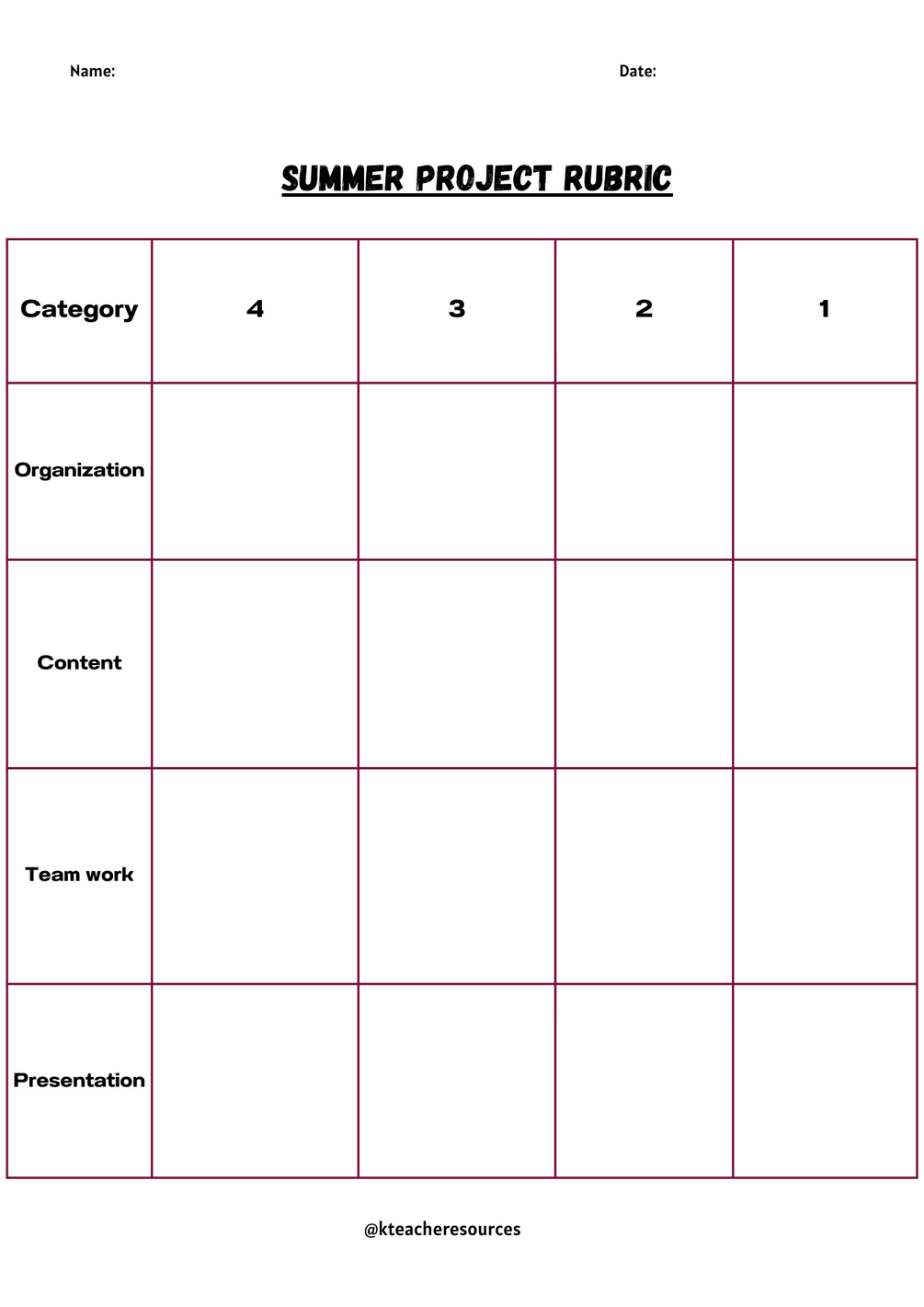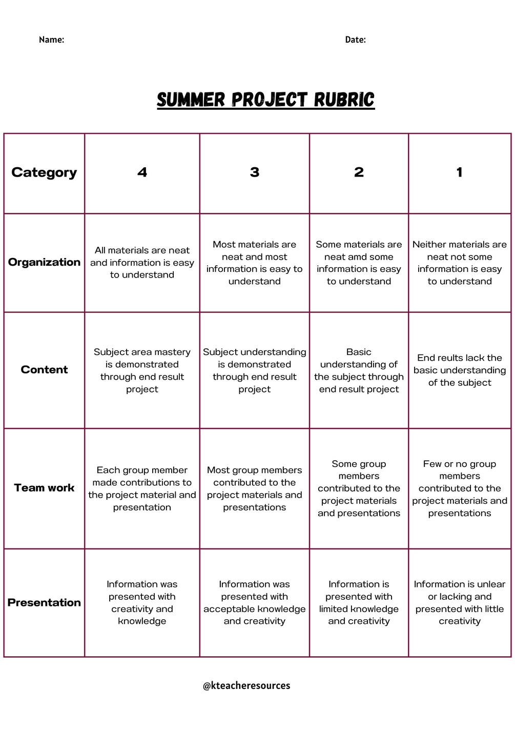 Have to assess students hard working project! Grab hold of this standard rubric to assess the summer projects